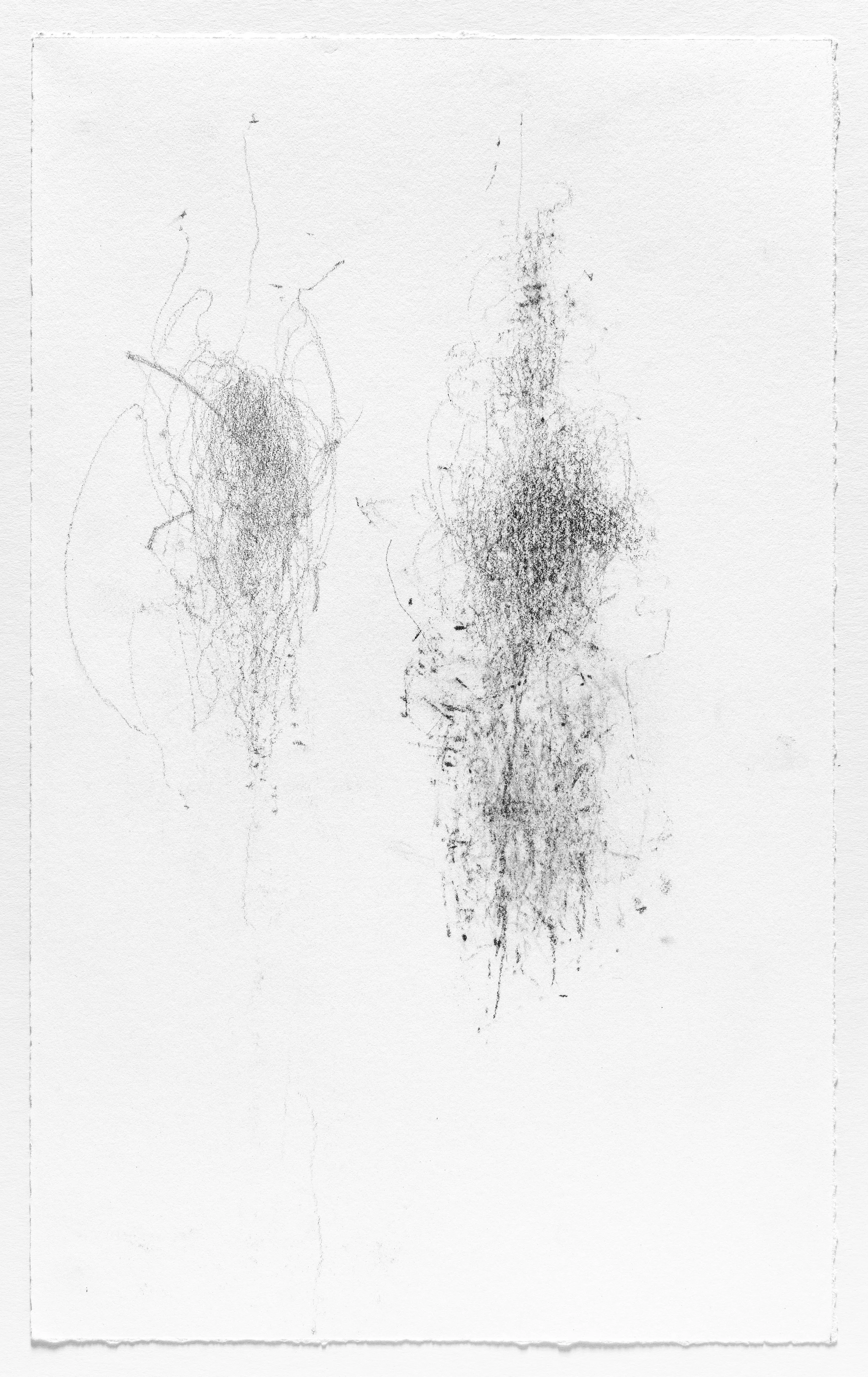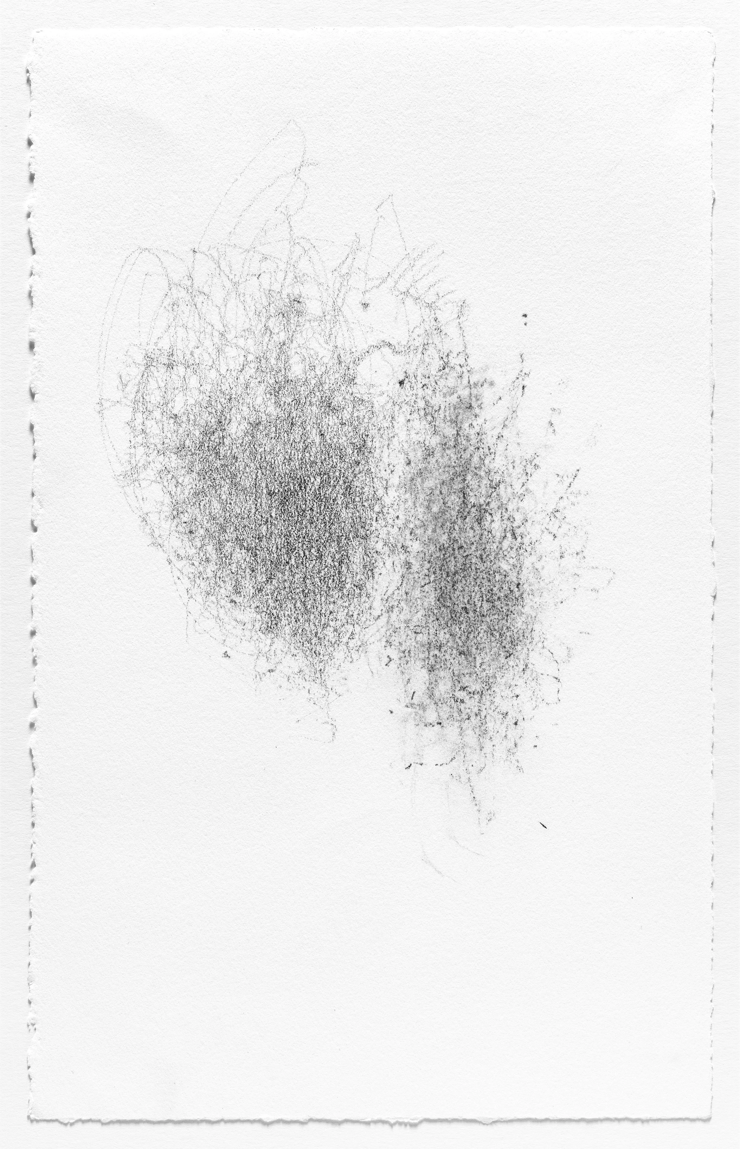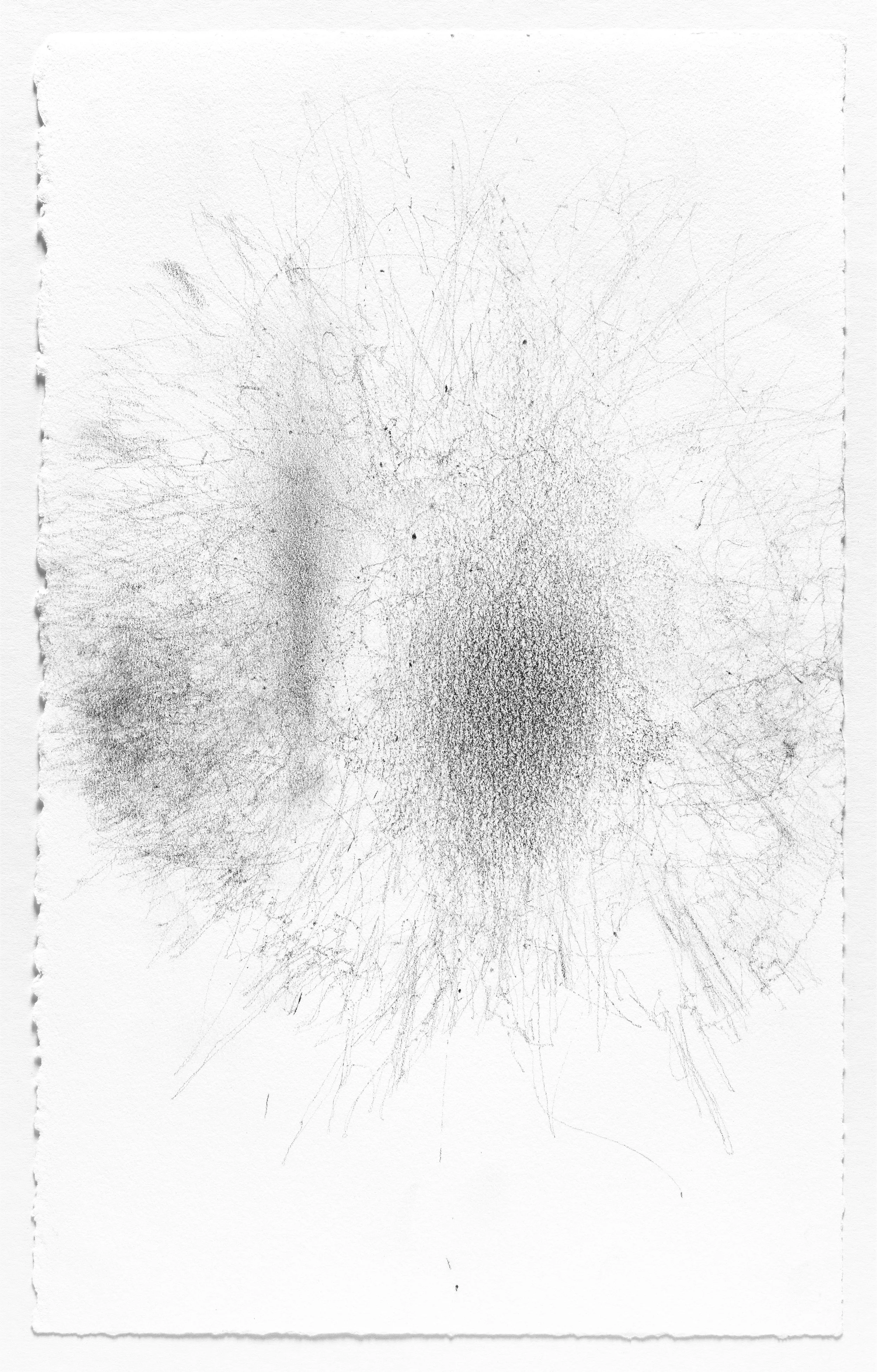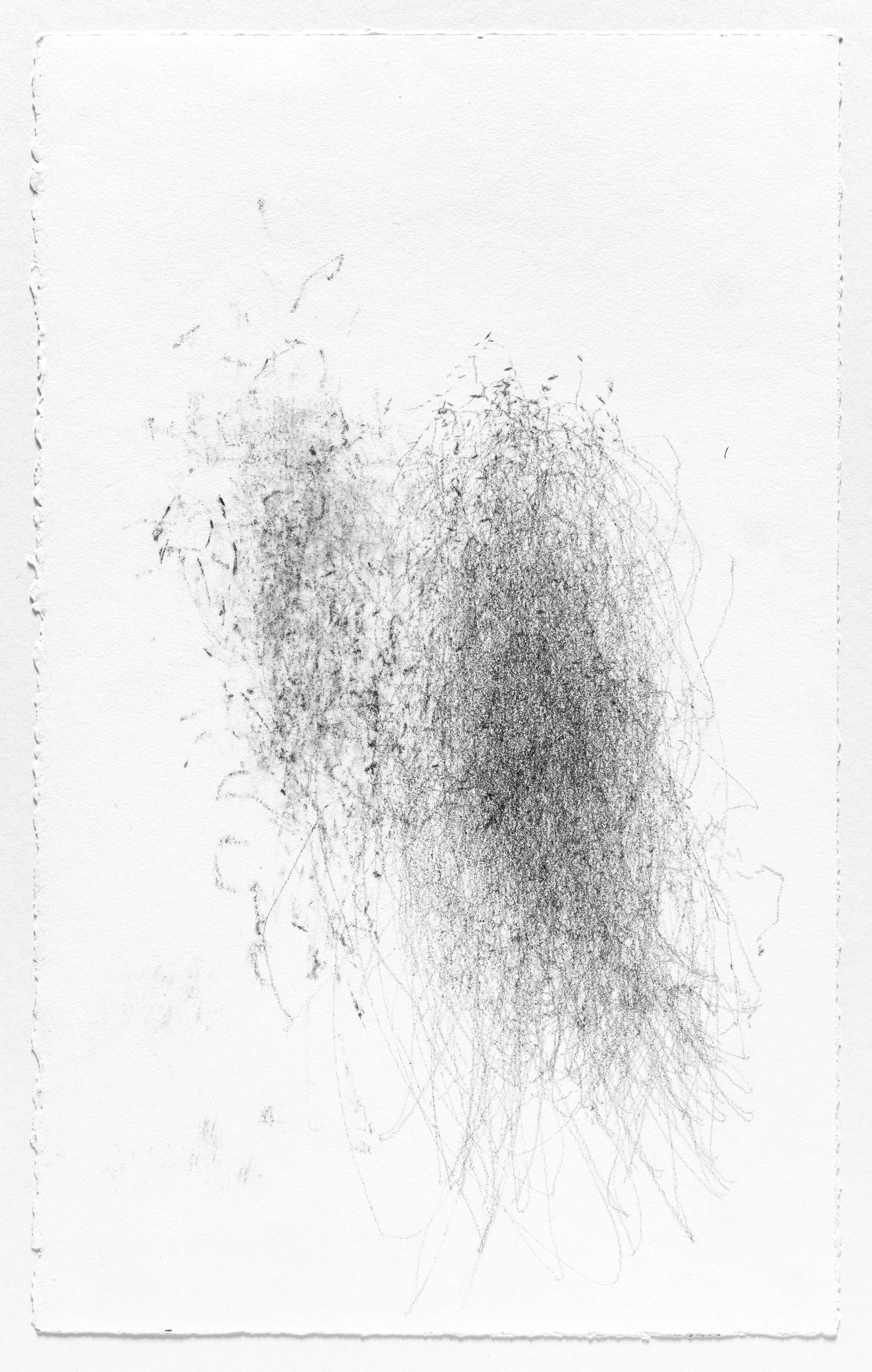 In this series I use the act of caring for a baby as a form of mark-making. I hung pieces of graphite from the underside of a glider rocking chair which then created marks on a piece of paper attached to the stationary base. I began this series when my daughter was born and completed it the day she turned one. Anyone who used the rocking chair during the first year of her life participated in the creation of the works.