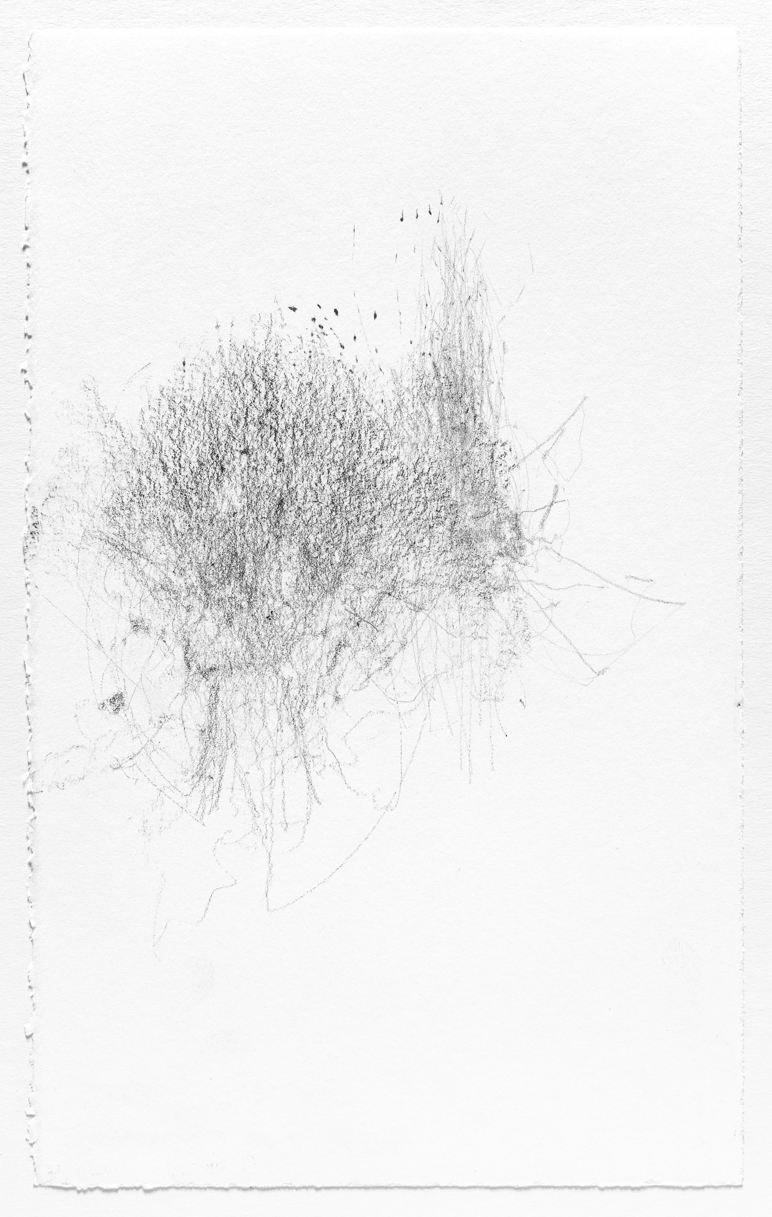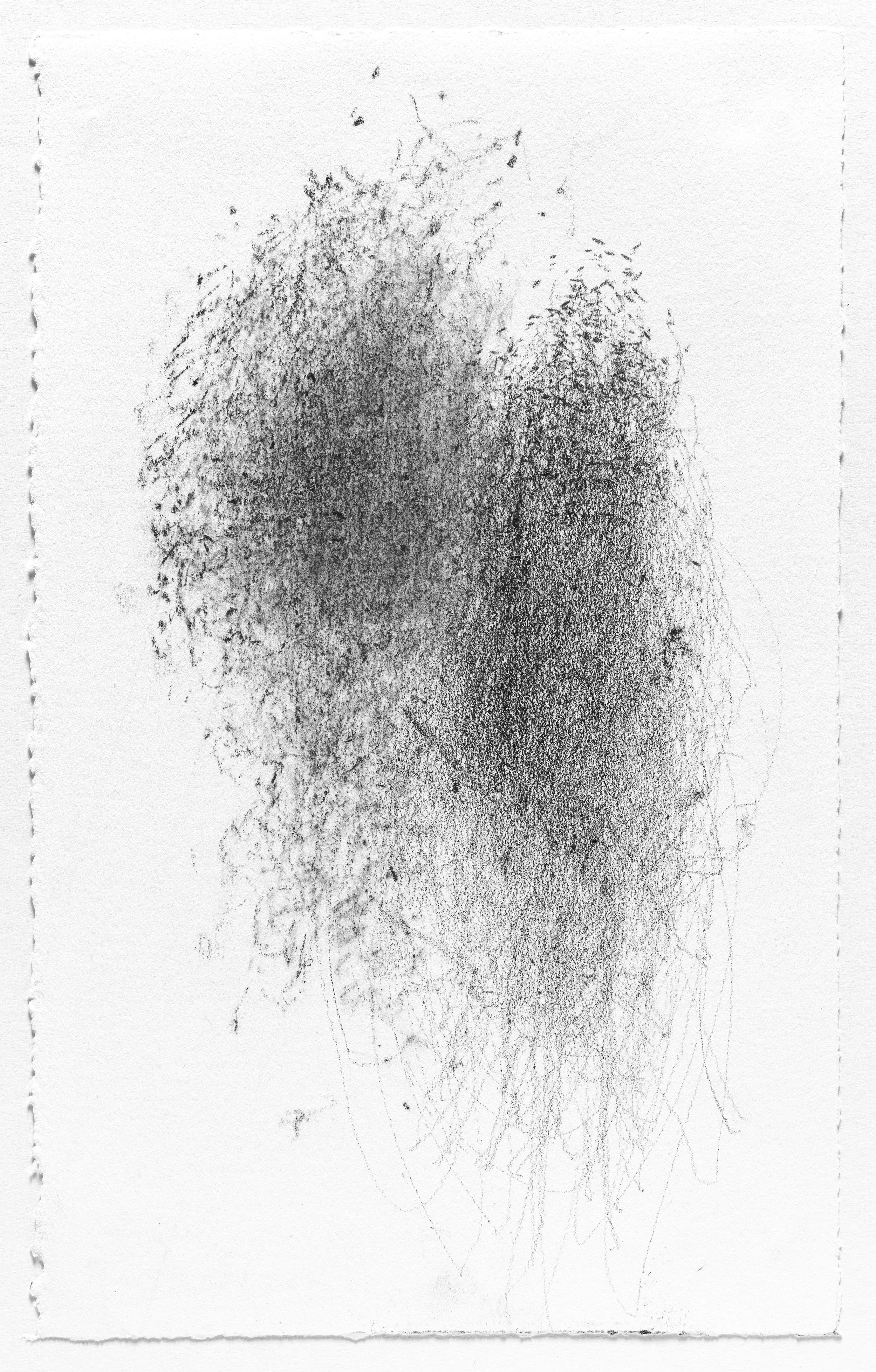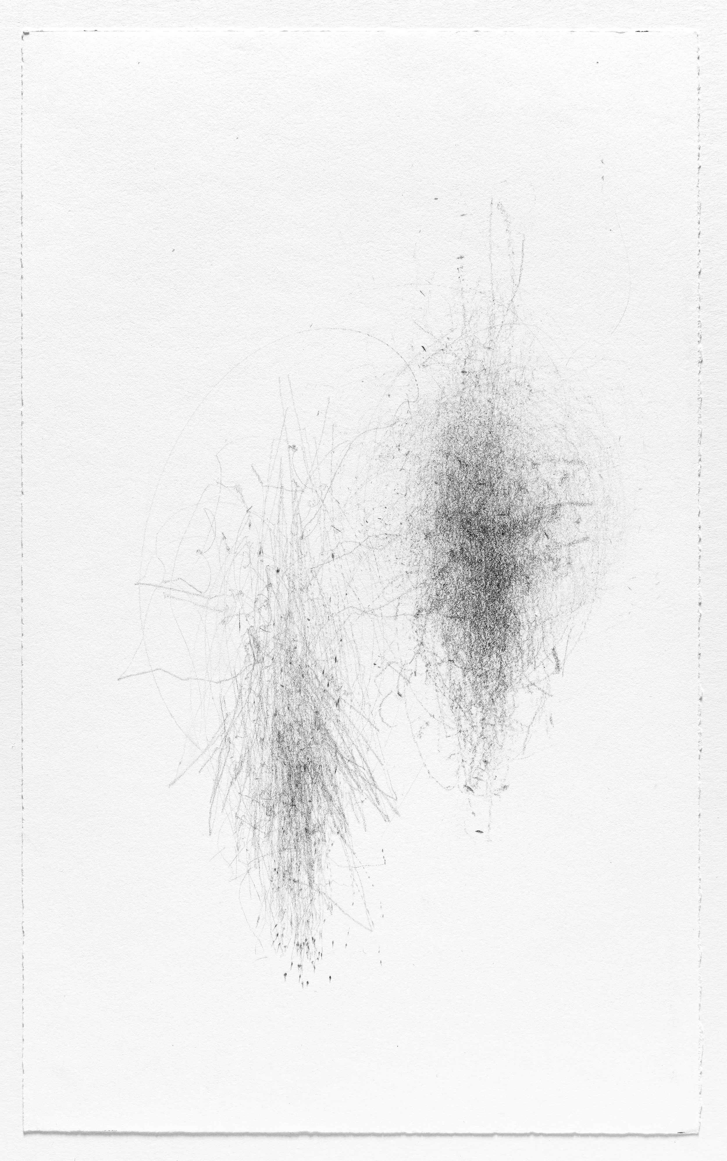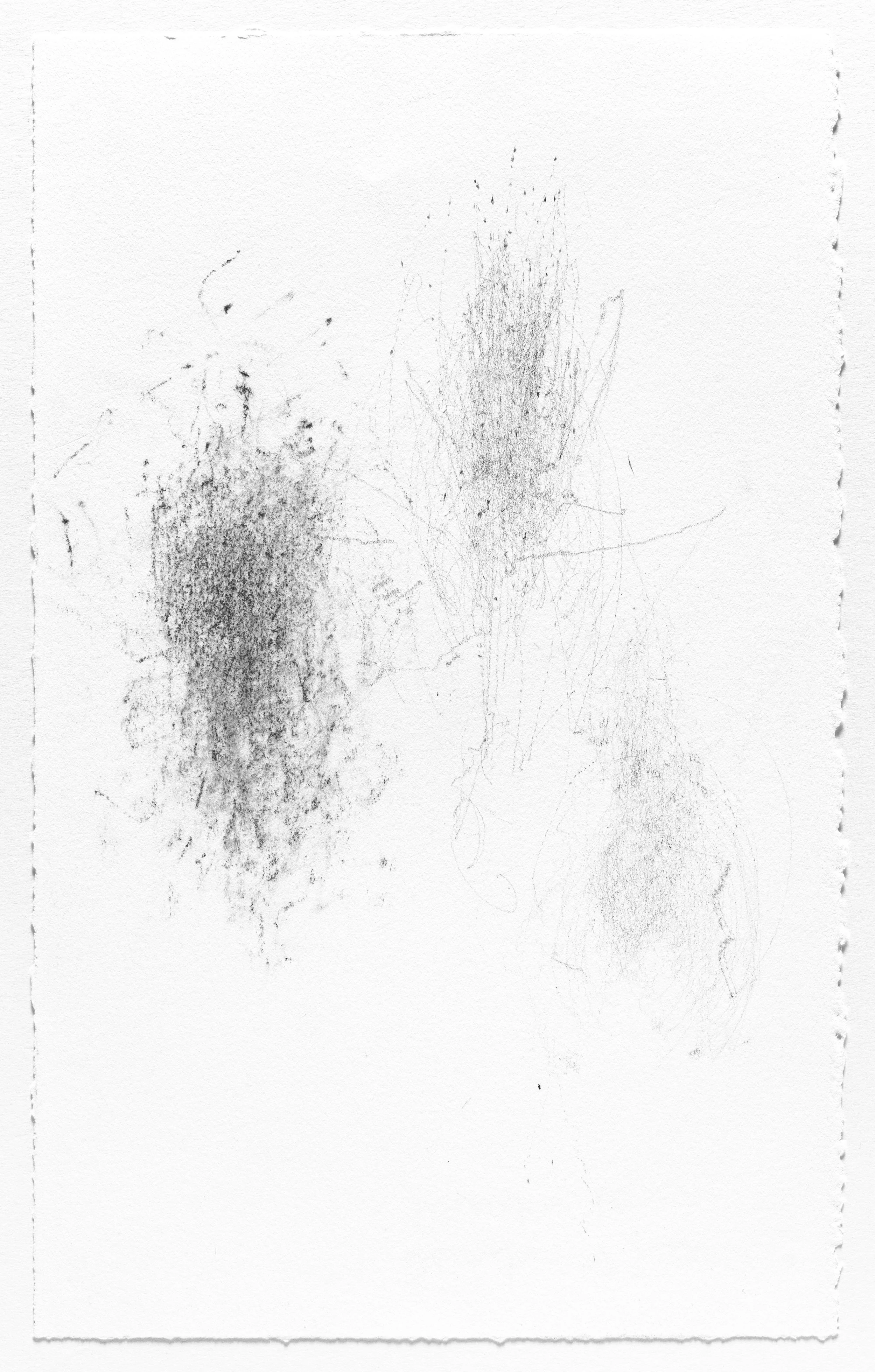 In this series I use the act of caring for a baby as a form of mark-making. I hung pieces of graphite from the underside of a glider rocking chair which then created marks on a piece of paper attached to the stationary base. I began this series when my daughter was born and completed it the day she turned one. Anyone who used the rocking chair during the first year of her life participated in the creation of the works.