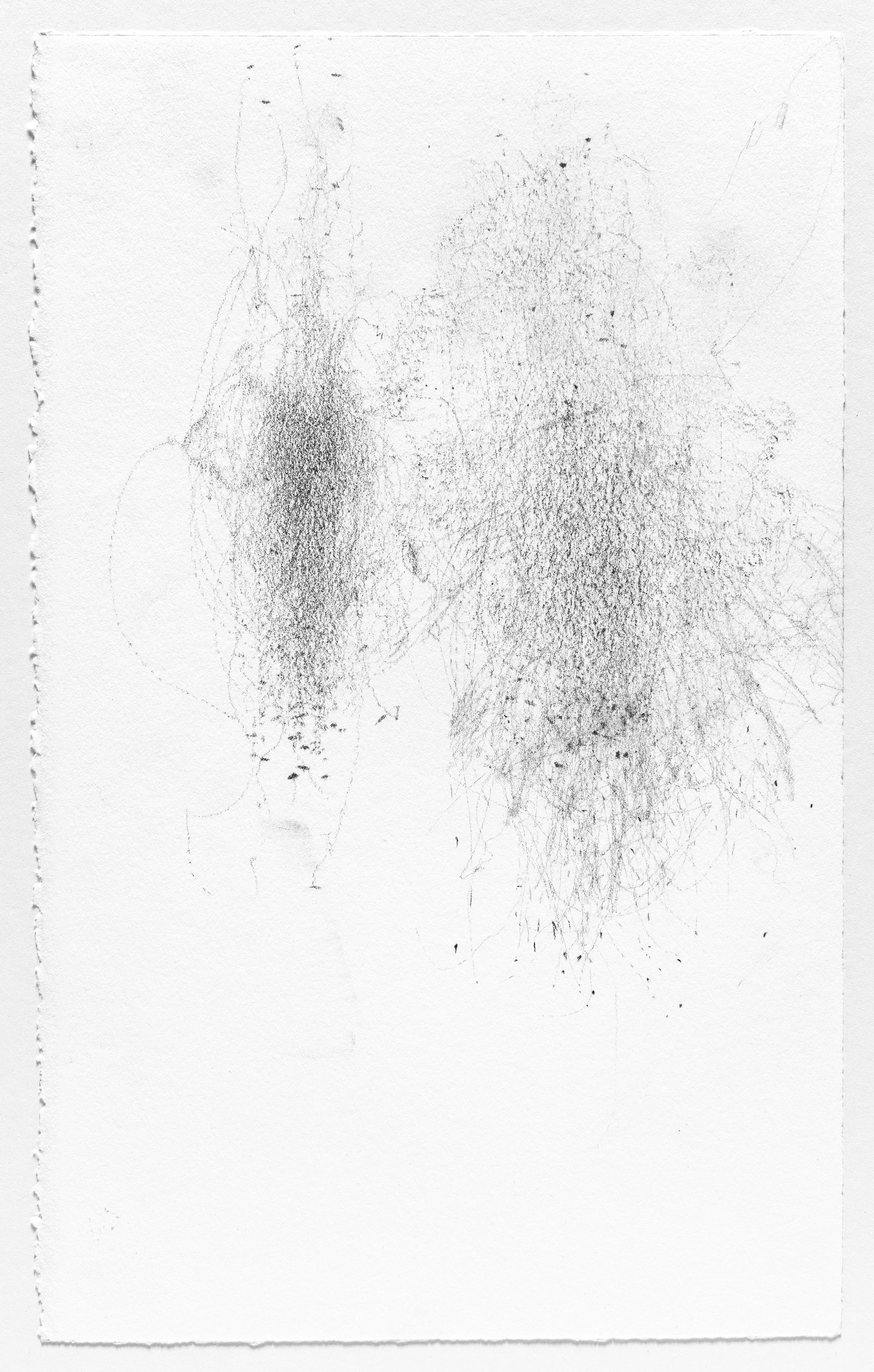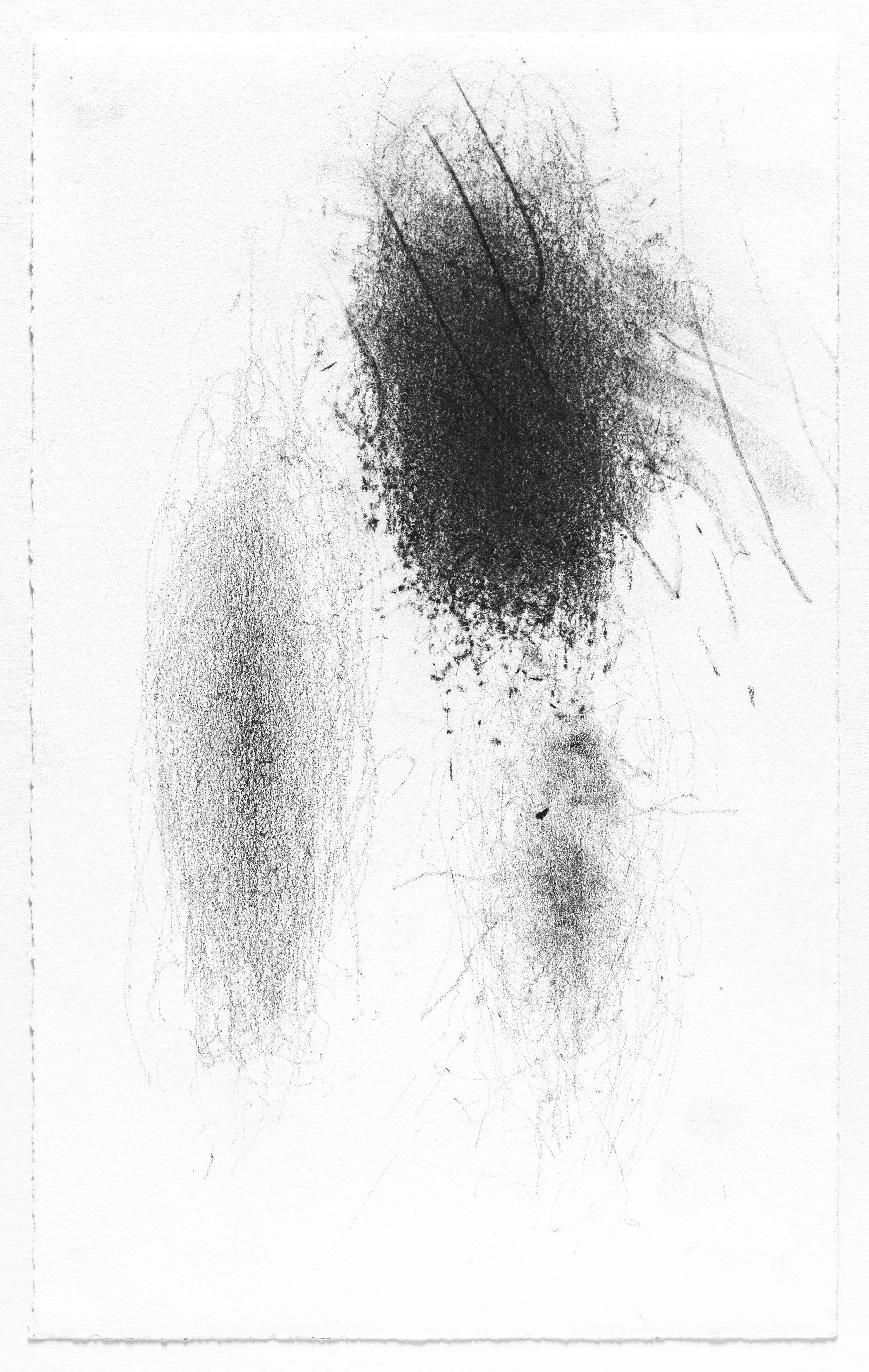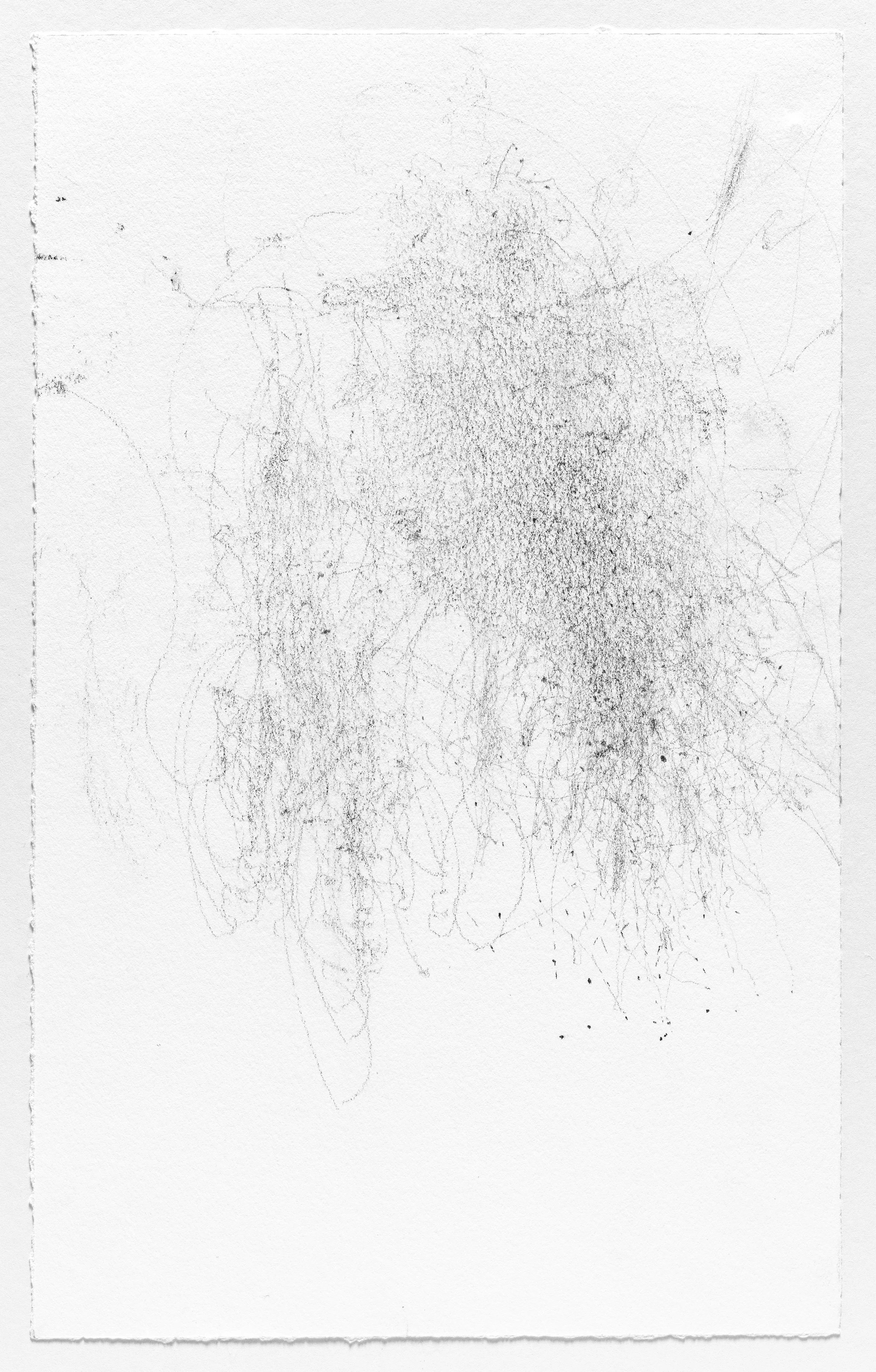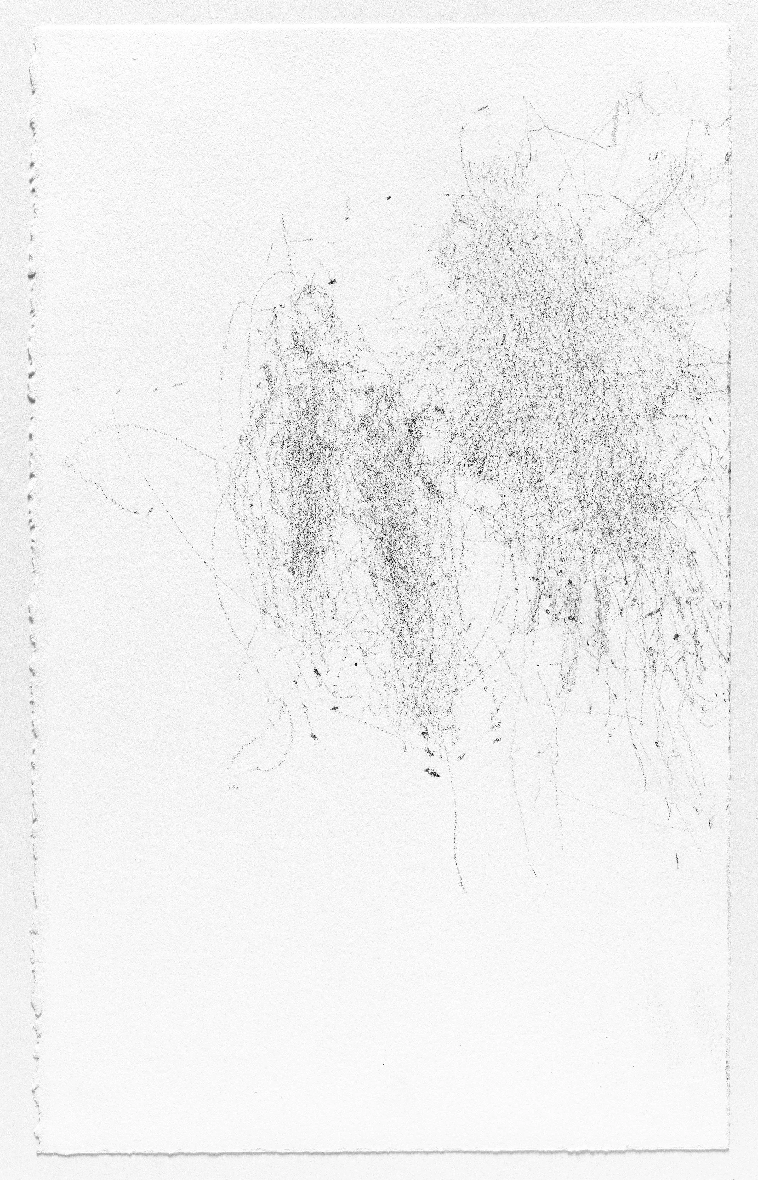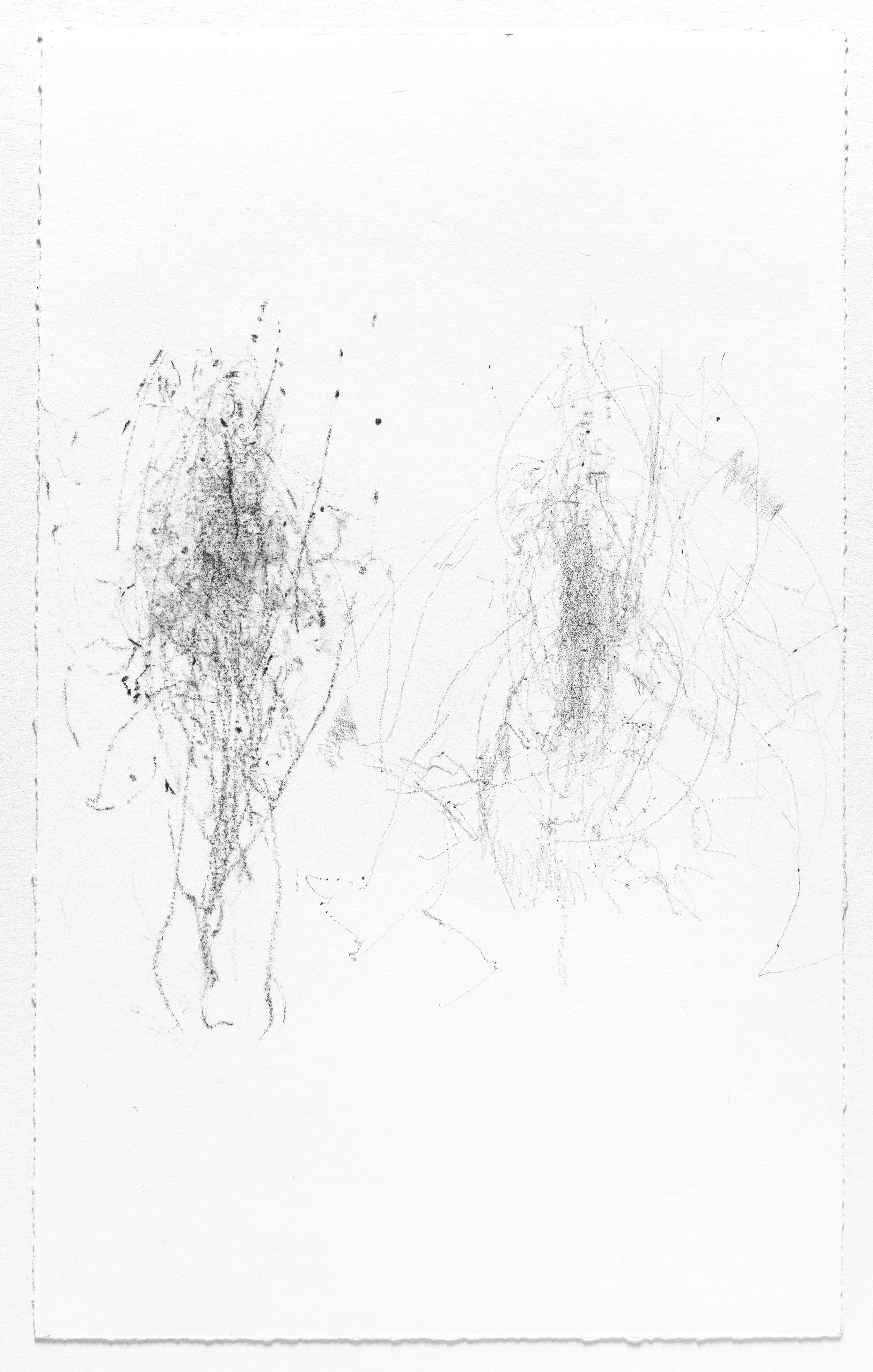 In this series I use the act of caring for a baby as a form of mark-making. I hung pieces of graphite from the underside of a glider rocking chair which then created marks on a piece of paper attached to the stationary base. I began this series when my daughter was born and completed it the day she turned one. Anyone who used the rocking chair during the first year of her life participated in the creation of the works.