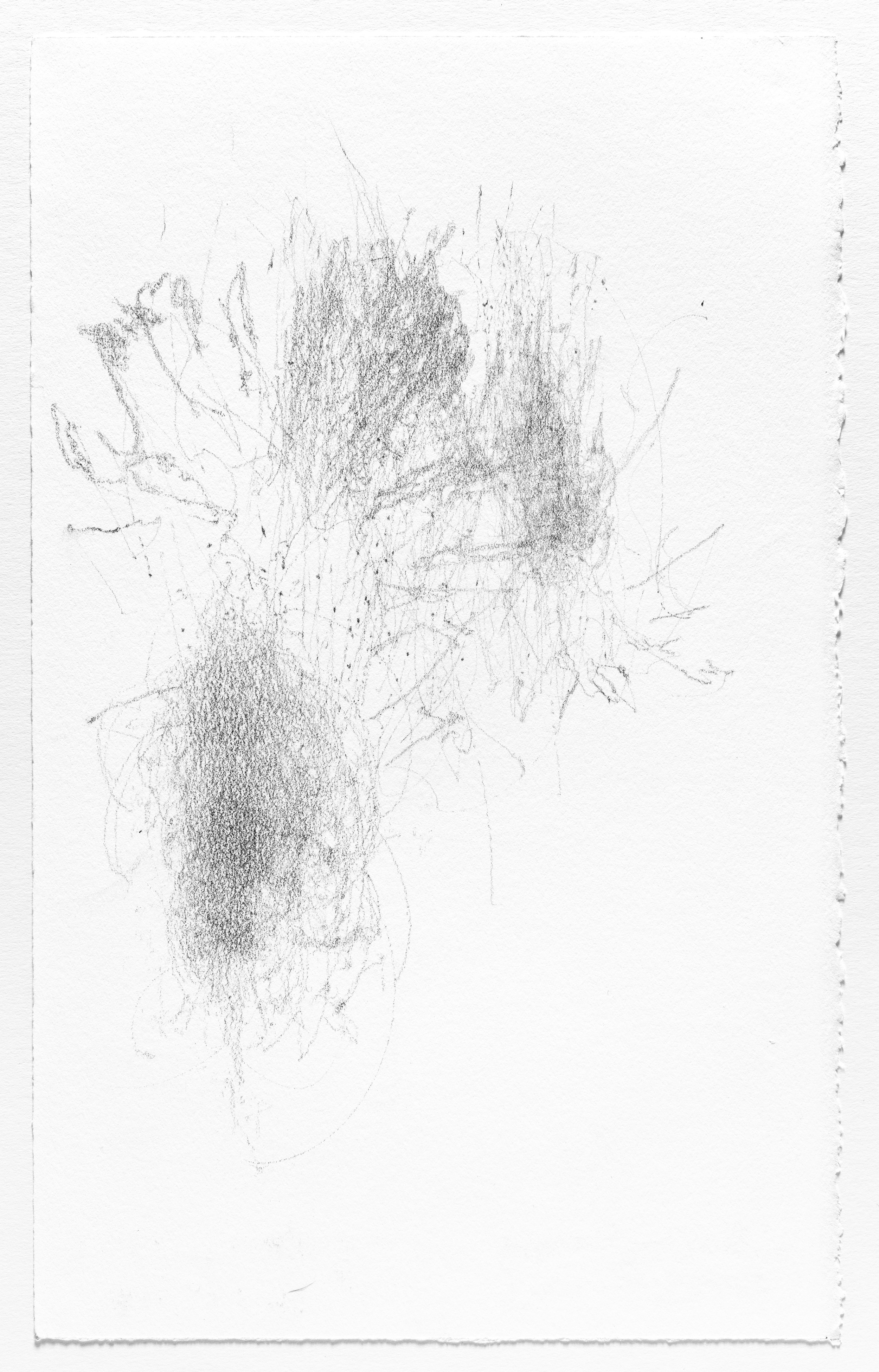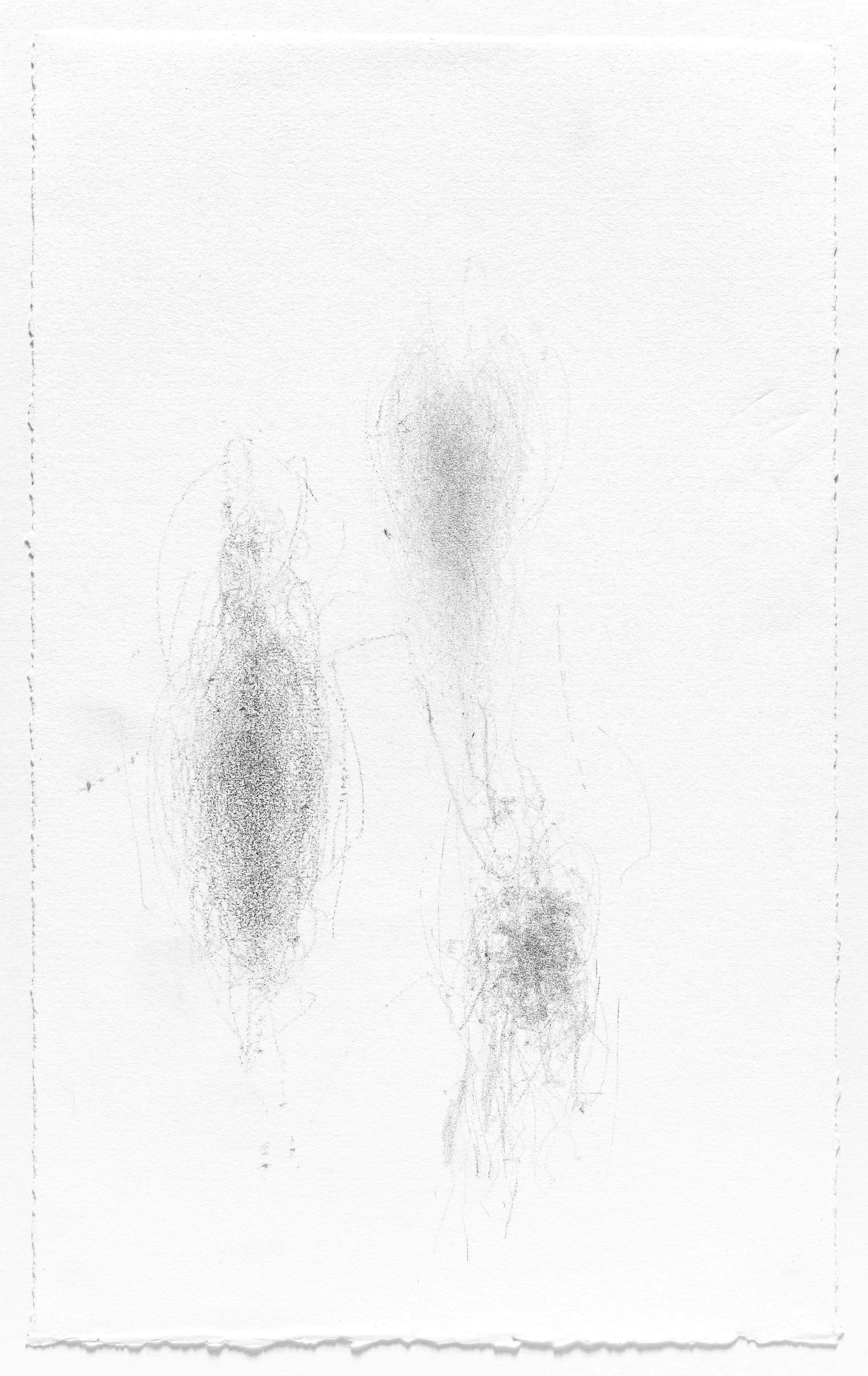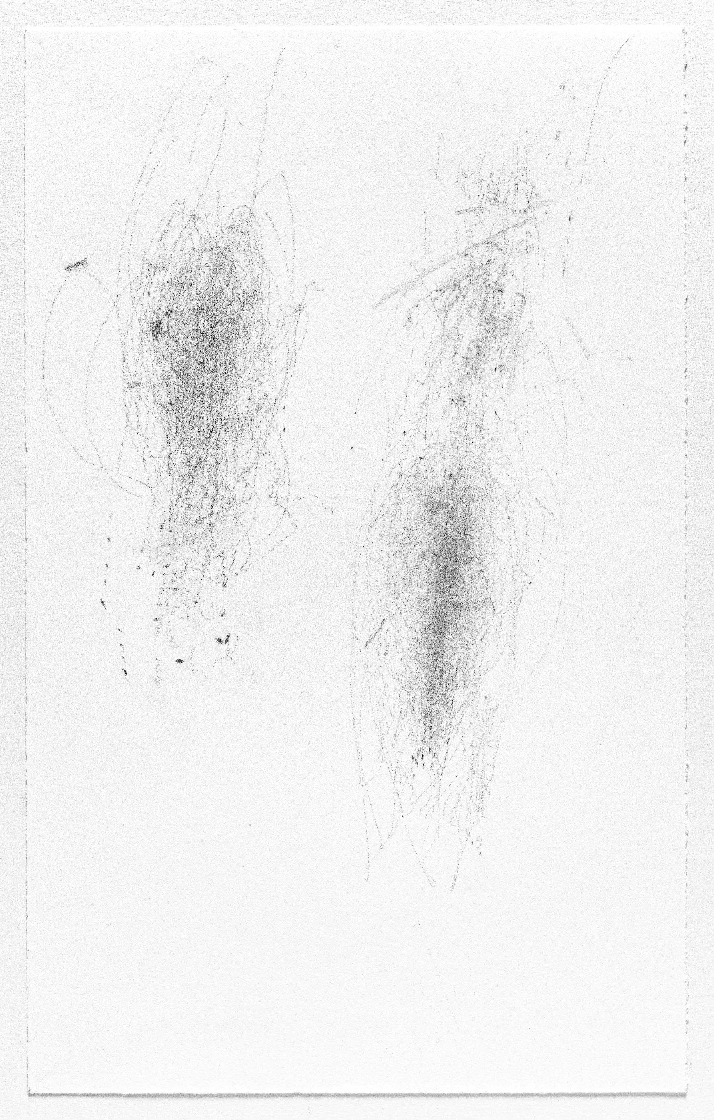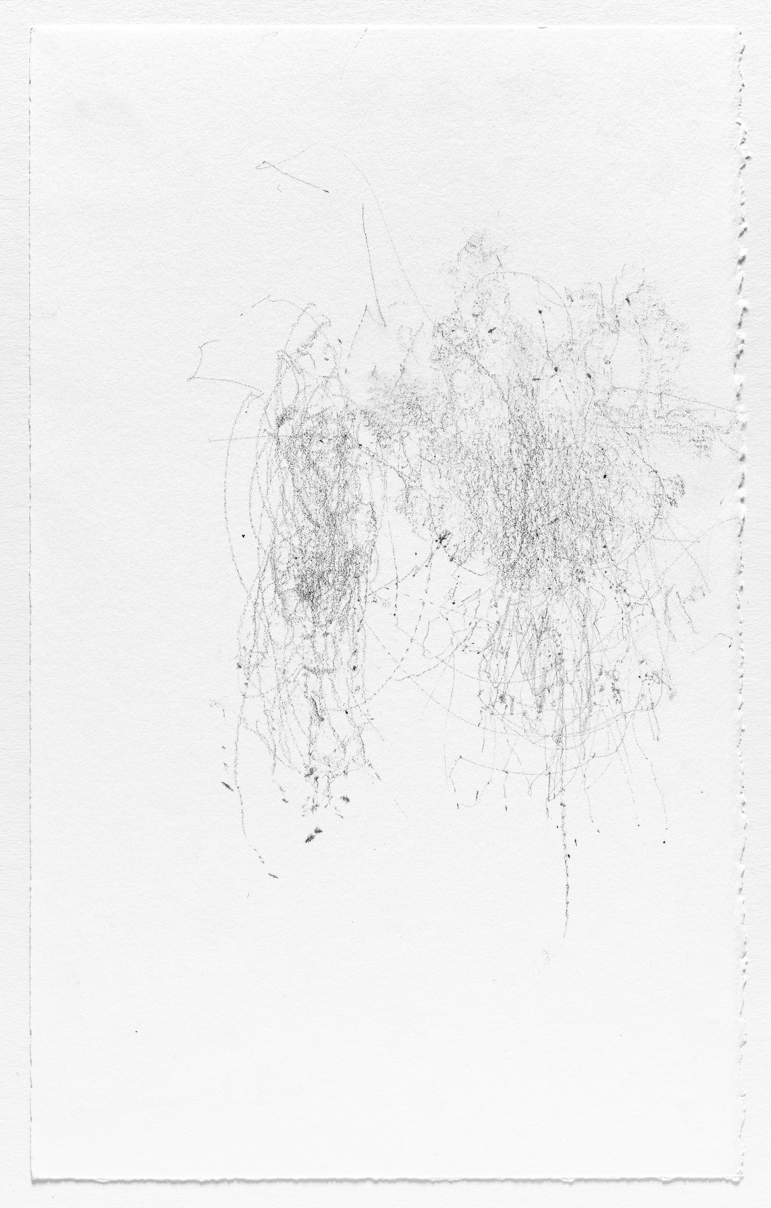 In this series I use the act of caring for a baby as a form of mark-making. I hung pieces of graphite from the underside of a glider rocking chair which then created marks on a piece of paper attached to the stationary base. I began this series when my daughter was born and completed it the day she turned one. Anyone who used the rocking chair during the first year of her life participated in the creation of the works.