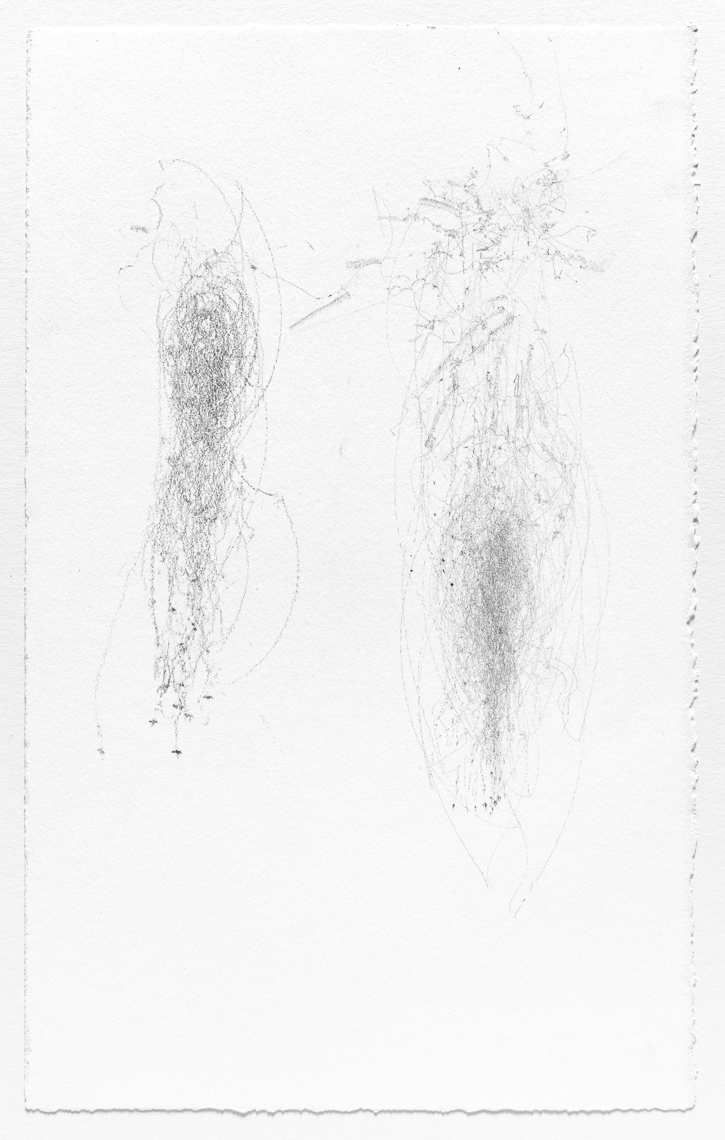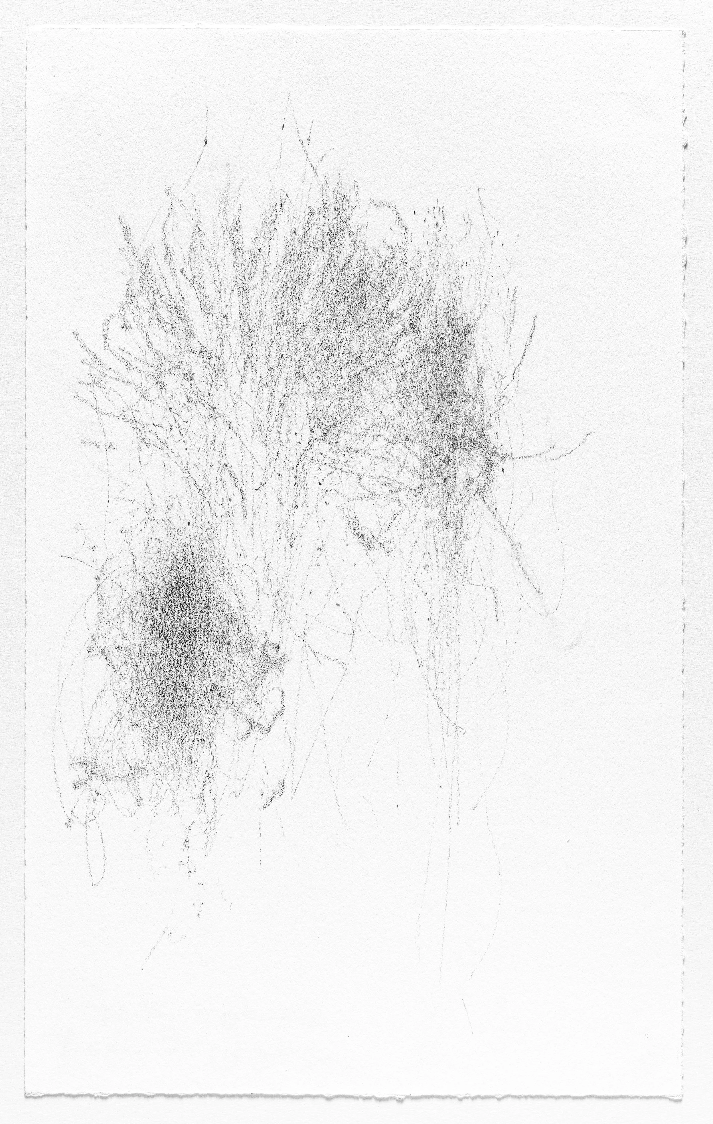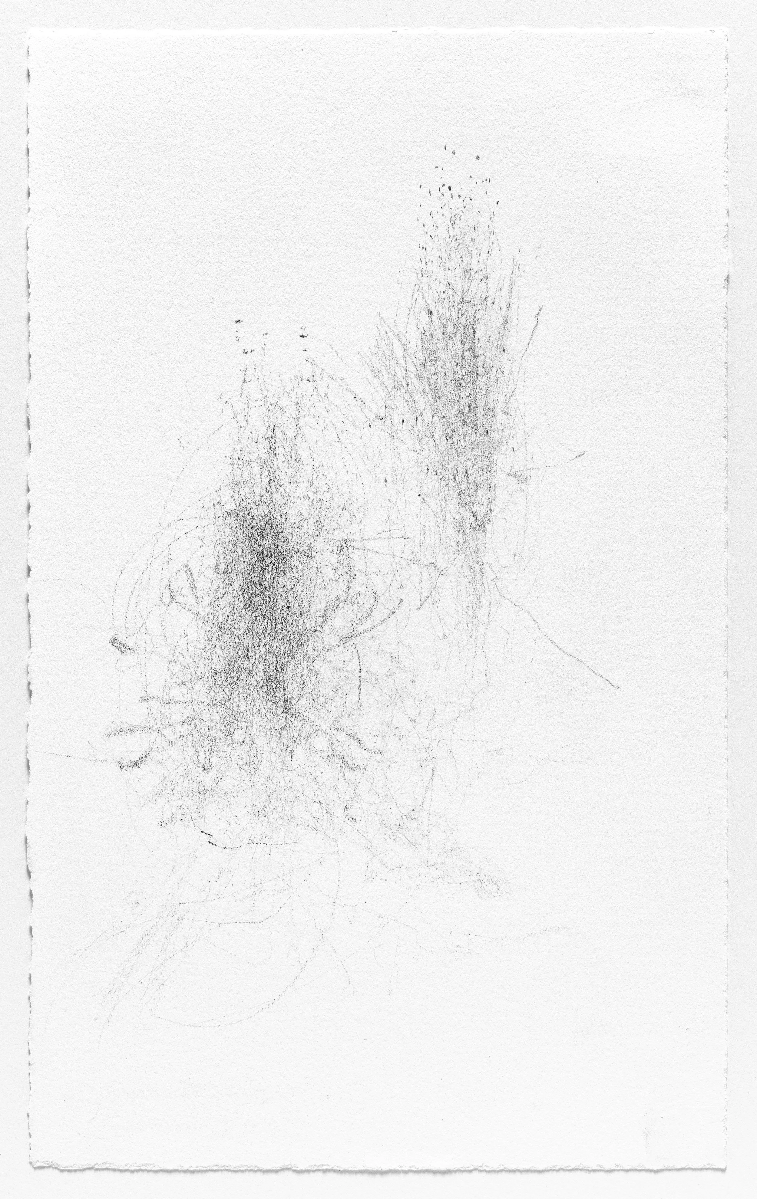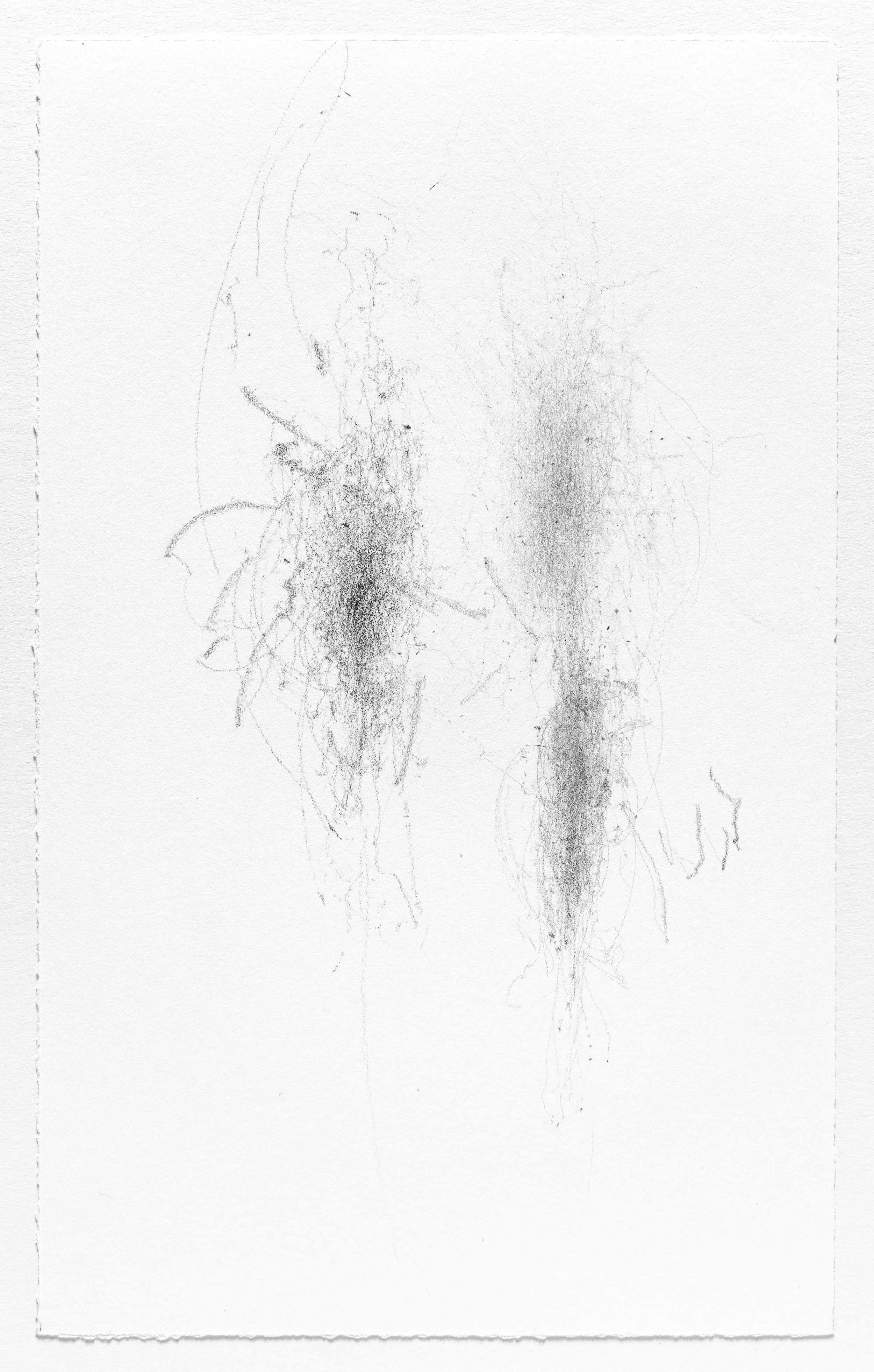 In this series I use the act of caring for a baby as a form of mark-making. I hung pieces of graphite from the underside of a glider rocking chair which then created marks on a piece of paper attached to the stationary base. I began this series when my daughter was born and completed it the day she turned one. Anyone who used the rocking chair during the first year of her life participated in the creation of the works.
